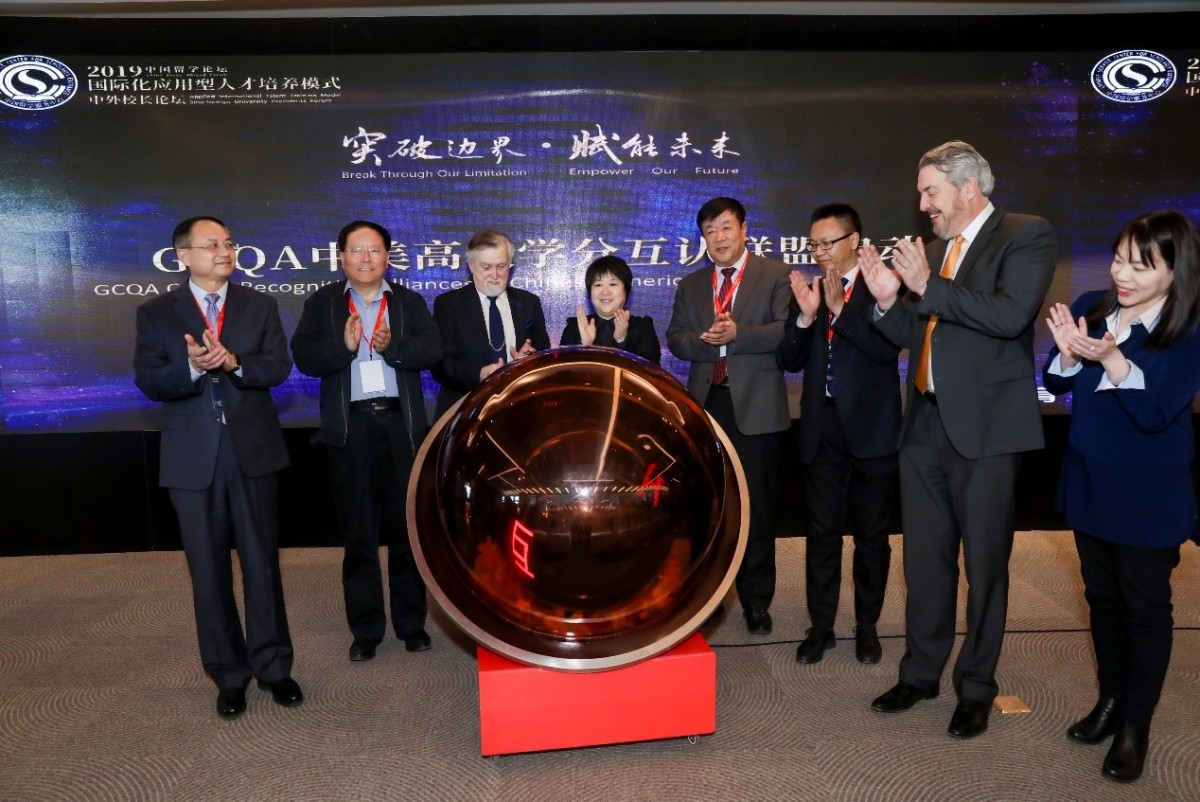 2019年3月21日,由教育部留學服務中心主辦、一号娱乐集團承辦的2019中國留學論壇分論壇——國際化應用型人才培養模式中外校長論壇在北京僑夢苑舉行,來自中國、美國、歐洲、澳洲的高校校長、全球職業與教育品質評估認證機構(GCQA)負責人、外方高校駐華代表處代表以及教育界專家一百多人參加了此次論壇。論壇以“突破邊界、賦能未來”為主題,聚焦應用型人才培養,共同探討中外教育國際合作新模式。此次會議上,全球職業與教育品質評估認證機構(GCQA)與一号娱乐集團聯合發起了中美高校學分互認合作聯盟。